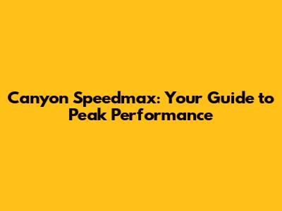 Upgrading Your Canyon Speedmax: Boosting Performance