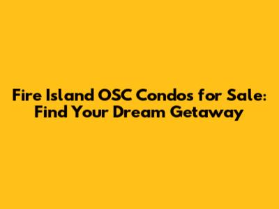 Fire Island OSC Condos For Sale: Find Your Dream Getaway