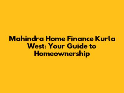 Mahindra Home Finance: Your Kurla West Home Loan Guide