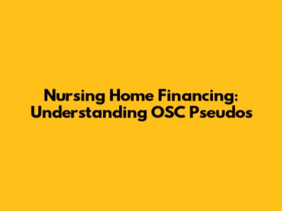 Navigating the world of nursing home financing can feel like wading through a dense fog, especially when you encounter terms like "OSC pseudos." For many families, understanding these financial intricacies is crucial to ensuring their loved ones receive the care they need without facing undue financial hardship. In this comprehensive guide, we'll break down what OSC pseudos are, how they relate to nursing home financing, and what you need to know to make informed decisions. Think of this as your friendly roadmap to understanding a somewhat complex topic. We'll cover everything from the basics of nursing home costs to the specifics of how OSC pseudos come into play, ensuring you're well-equipped to handle this important aspect of elder care. Many people find the financial aspects of nursing home care overwhelming, but with a clear understanding of the key terms and concepts, you can approach the situation with confidence and clarity. Let's dive in and unravel the mysteries of OSC pseudos in the context of nursing home financing! Understanding the financial landscape of nursing homes starts with recognizing the significant costs involved. Nursing home care is often a substantial expense, and it's essential to have a solid grasp of the various payment options available. This includes exploring government programs, private insurance, and other potential sources of funding. By familiarizing yourself with these resources, you can develop a comprehensive financial plan that addresses the unique needs of your family. Whether you're just beginning to explore nursing home options or are already facing the challenges of financing long-term care, this information will provide valuable insights and practical guidance.