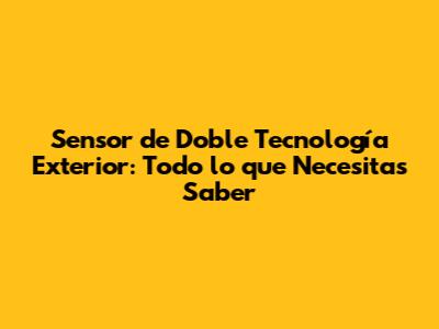 Sensor De Doble Tecnología Exterior: Guía Completa